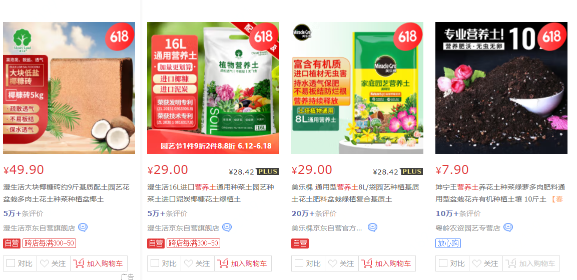 最近,很多人趁着618大促疯狂买“土”。京东销售情况显示,618高峰期营养土销量同比增长超5倍,大型绿植成交额环比增长超3倍。每年618都能成倍的拉动销售业绩,王明记得最厉害的一次,店铺整体销售额增长了10倍!