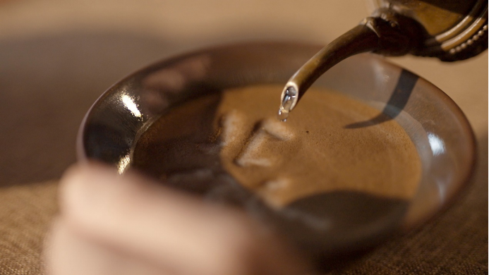 其实,它来自于我国传统绝活——茶百戏。茶百戏,又称“分茶”、“水丹青”等,历史上,盛行于福建武夷山一带。它起于唐,盛于宋,是只用茶和水作原料,在茶汤表面幻变出文字和图案的独特技艺。