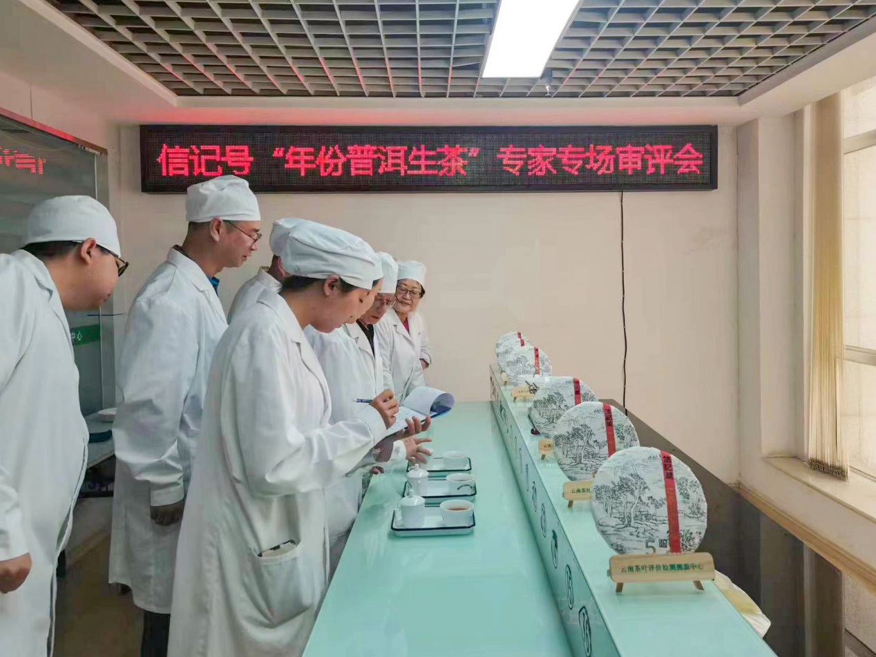 云南茶叶评价检测溯源中心专家对信记号年份普洱生茶进行审评