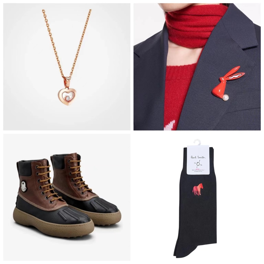 配合新年、春节的各种着装,造型灵动吸睛的萧邦Happy Diamonds系列爱心单钻项链、融入长耳兔造型的Max Mara2023中国新年限定系列水晶质感胸针,让整体装扮更显精致。Paul Smith与京东合作打造的专属联名系列斑马长袜,TOD'S x 8 Moncler Palm Angels胶囊系列联名新品,也为冬日的素雅装扮增添细节亮点。