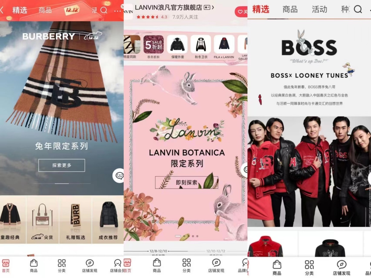 匹配年轻消费者对于趣味贺岁元素及个性化设计的喜爱,众多大牌新年限定款、联名款也亮相本届京东奢品节。BURBERRY兔年限定系列囊括童装、男装、女装,将兔子图案以印花和嵌花针织工艺点缀于衣物上,承包全家人的过年新装。同样以兔子为设计元素的LANVIN BOTANICA系列,推出了男女款卫衣、外套、裙装、帽子等单品,缤纷配色极富春日气息。BOSS携手兔八哥带来的联名款系列,在经典黑白色调上融入中国喜庆的红色与金色,满足消费者对时尚与卡通童趣的双重热爱。