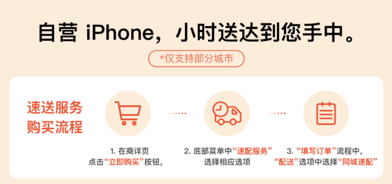 5月20日,京东全新上线Apple自营小时购,即日起消费者在Apple产品京东自营旗舰店购买iPhone时,可选择同城配送的送货方式,最快1小时就能到手新机。