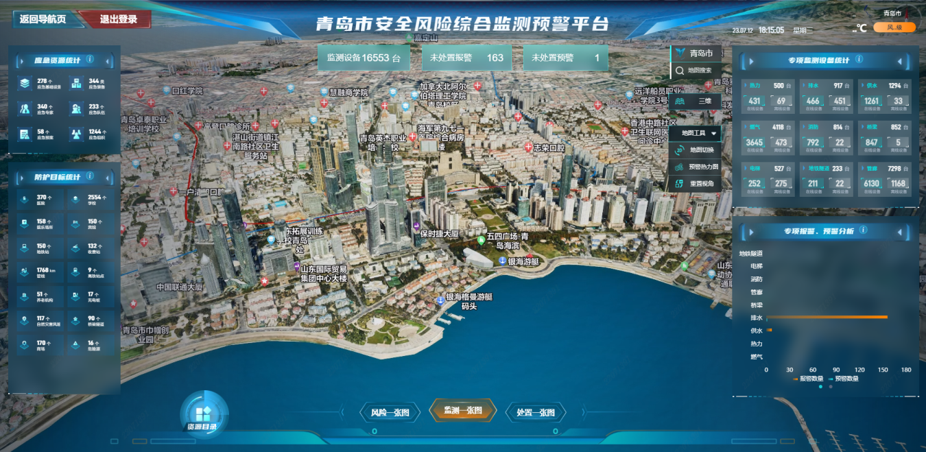 在“青岛城市安全风险综合监测预警平台”项目打造中,海纳云应急团队坚持“用户需求第一”的态度,为解决城市存量风险和新增风险交织、耦合、演化的难题,团队搭建起青岛城市安全“空天地”立体化感知监测网,建设城市安全风险综合监测预警中心,打造“青岛城市安全风险综合监测预警平台”,形成对燃气、供水、排水等9大专项60余种风险的“灵敏感知、智能分析、高效处置”,助力打造数字化赋能应急安全管理的“青岛模式”,守护城市安全、高质量发展。